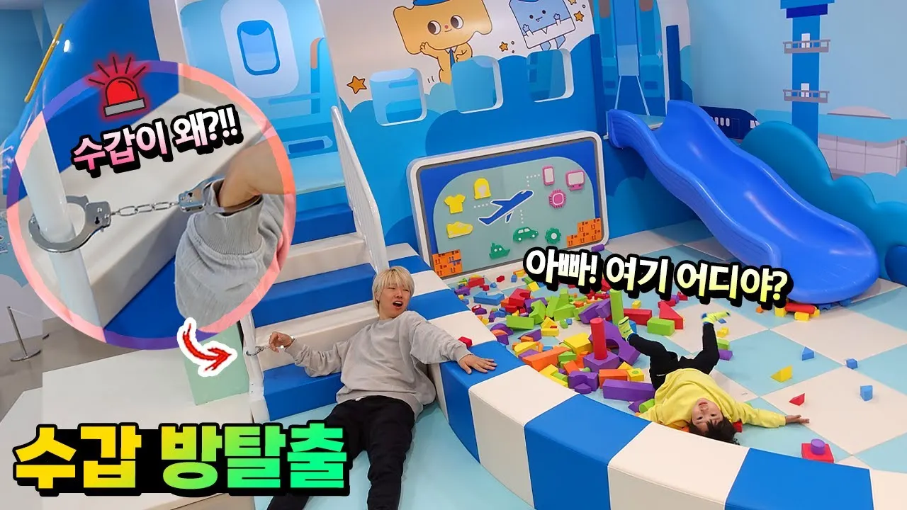 제목: 자고 일어났는데 손에 수갑이 있어요!! 경찰서?! 여긴 어디?! 수갑 풀고 방탈출 해야한다! 시간 여행 아이랑 글로벌지식협력단지 어린이체험관 흔한 가족 | 말이야와친구들
